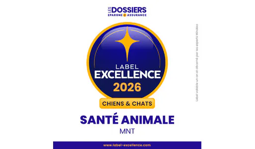 Pour la première fois, l’offre MNT Santé Animale Chien-Chat a été récompensée par le « Label d’excellence 2026 ».