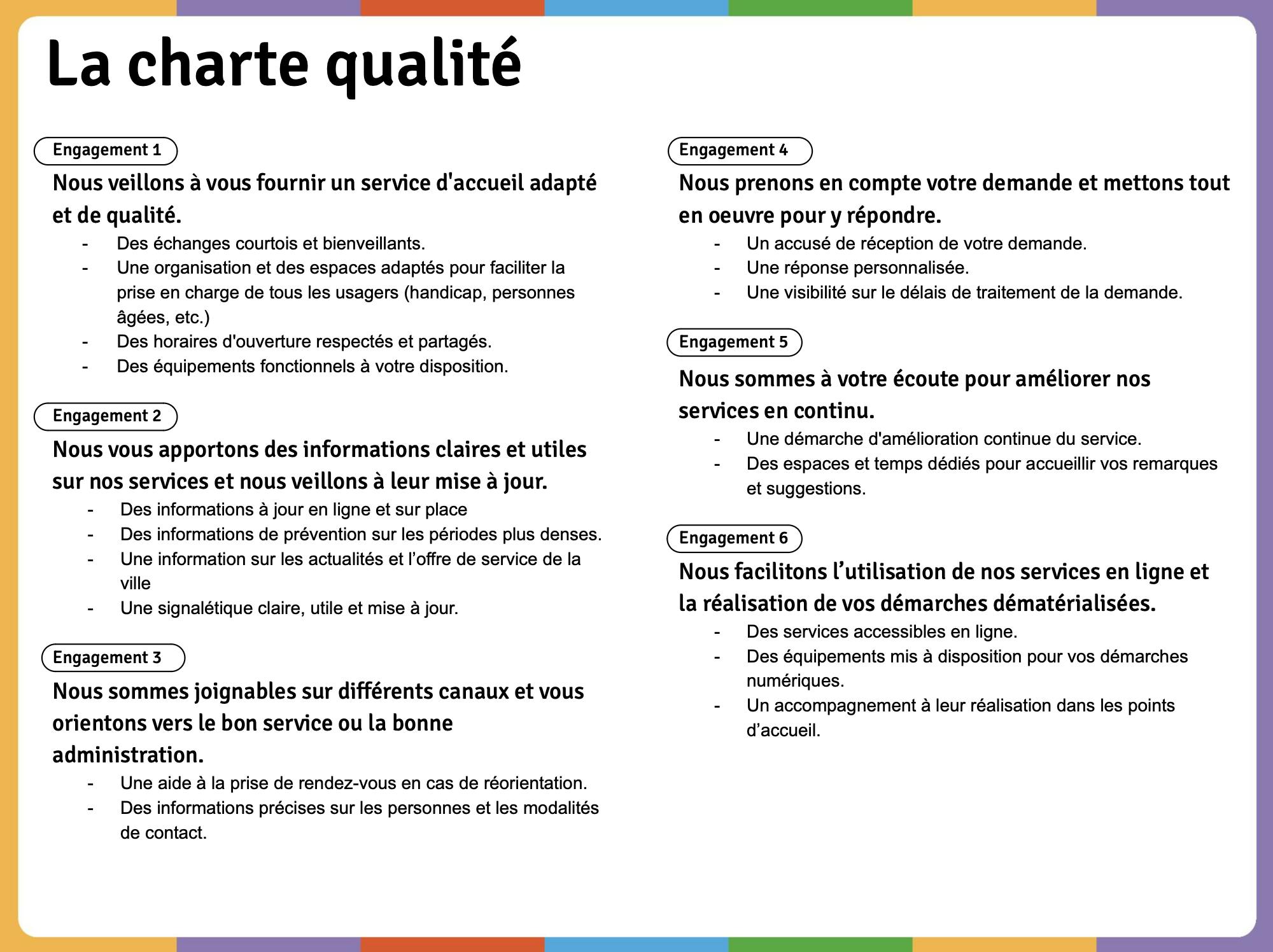 De nombreuses collectivités portent une forte attention à l’accueil, et pour cela, mènent des démarches d’amélioration de leurs protocoles d’accueil. Dans le cadre de l’accompagnement par le Fonds MNT, trois collectivités ont pu bénéficier d’un suivi pour créer des protocoles d’amélioration de leur accueil, dans des contextes différents et avec des enjeux propres, mais qui ont produit des solutions complémentaires et des outils transposables. Découvrez dans cette page les compte-rendus méthodologiques des démarches, les outils (enseignements terrains, différentes signalétiques, etc), les témoignages des agents et des études pour aller plus loin.